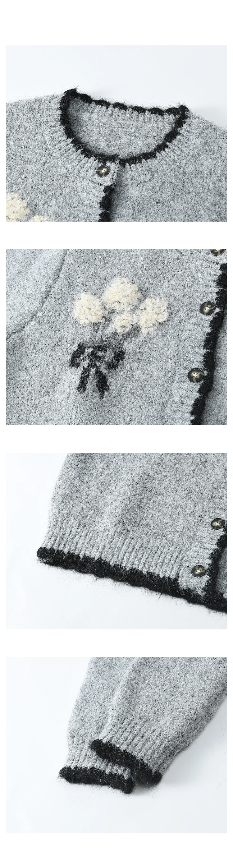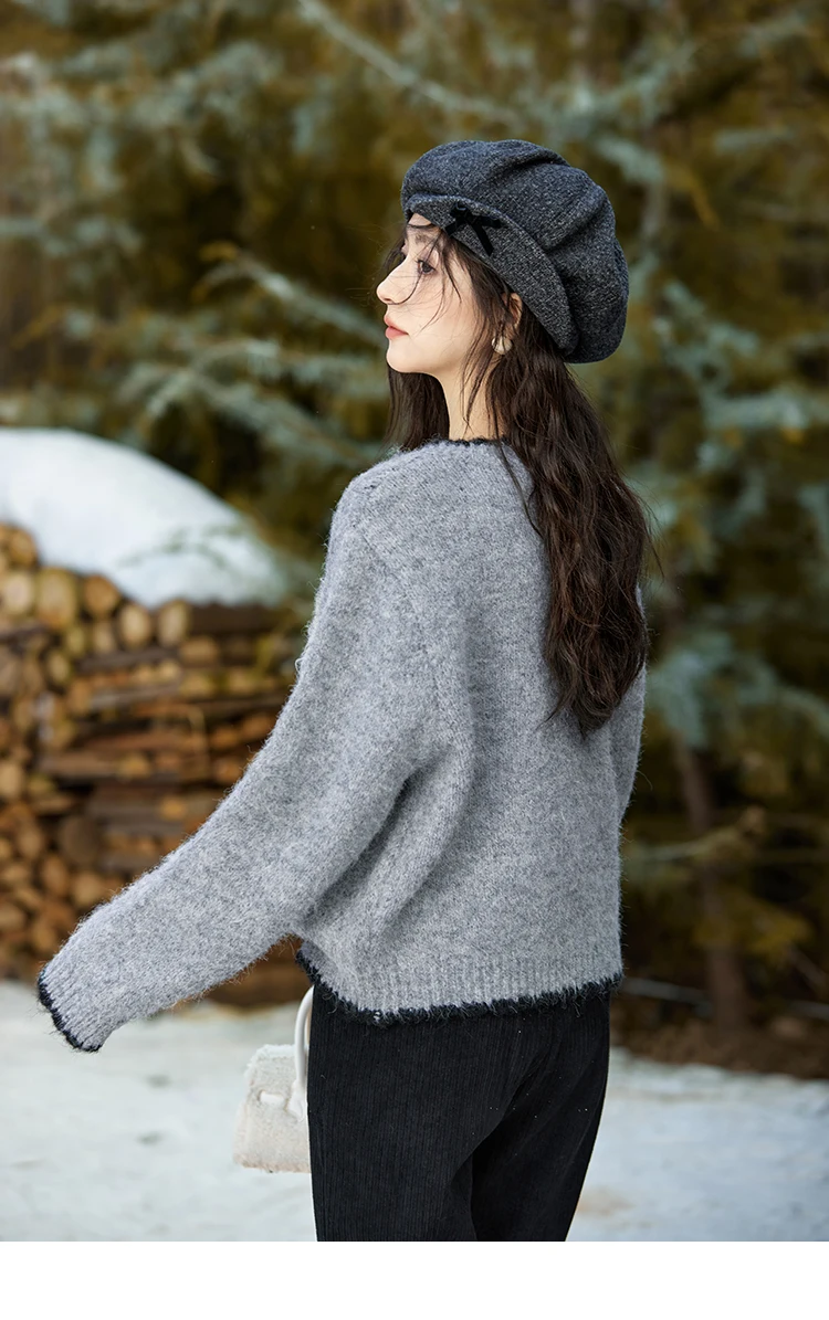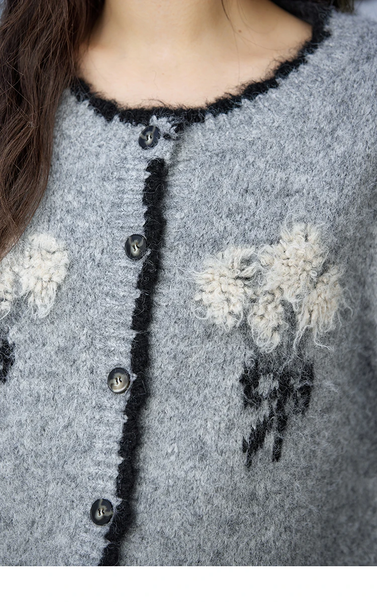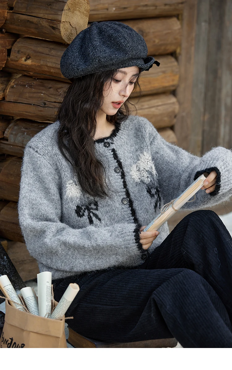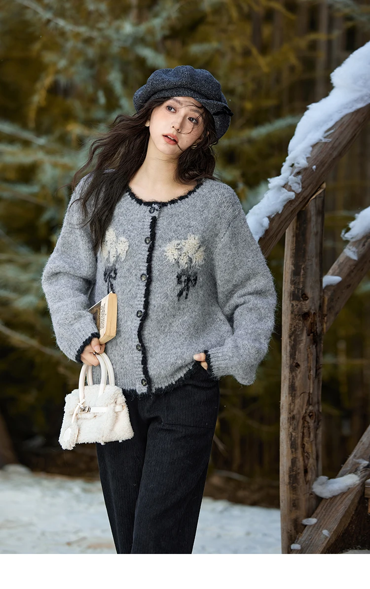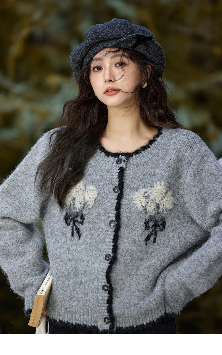 MISHOW Wool Blend Knitted Cardigan Pure Bouquet Embroidery Sweater Women Color Clash Design Soft Warm Regular Fit Top MXD54Z0951