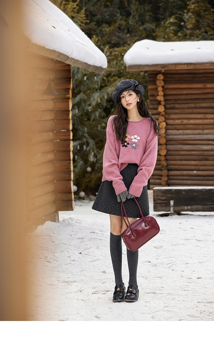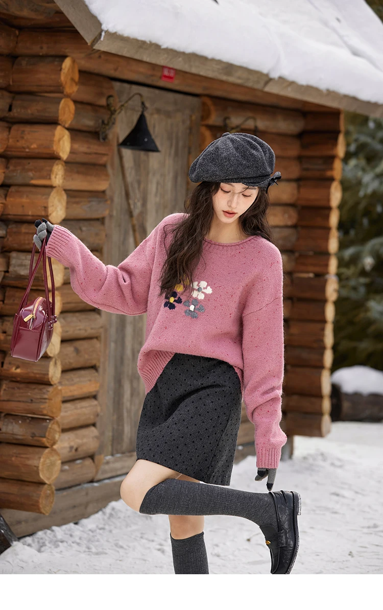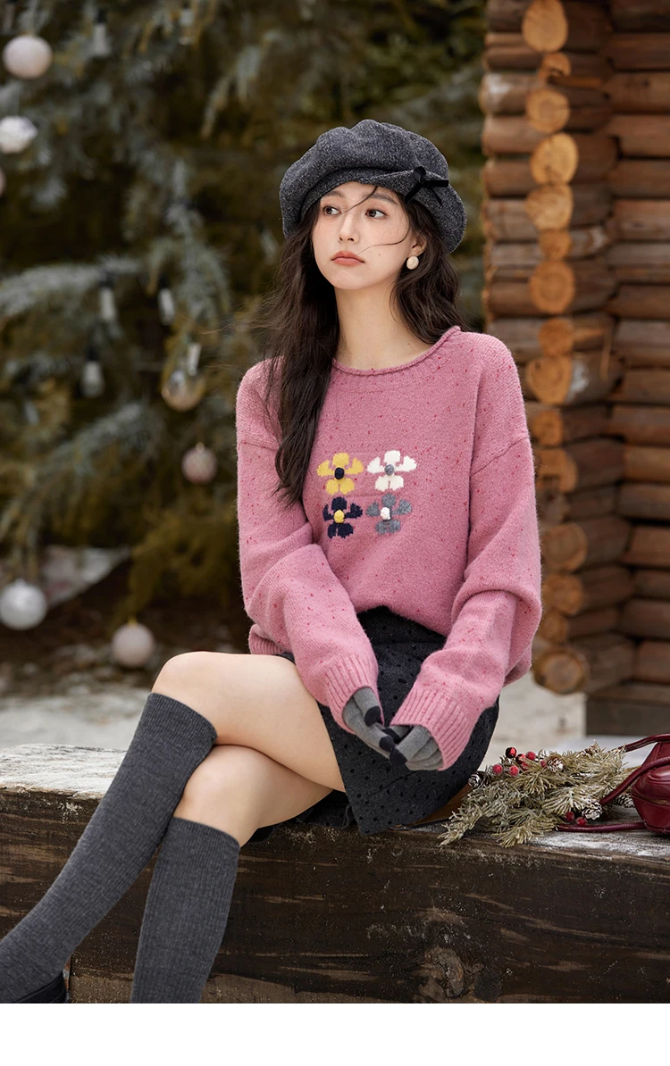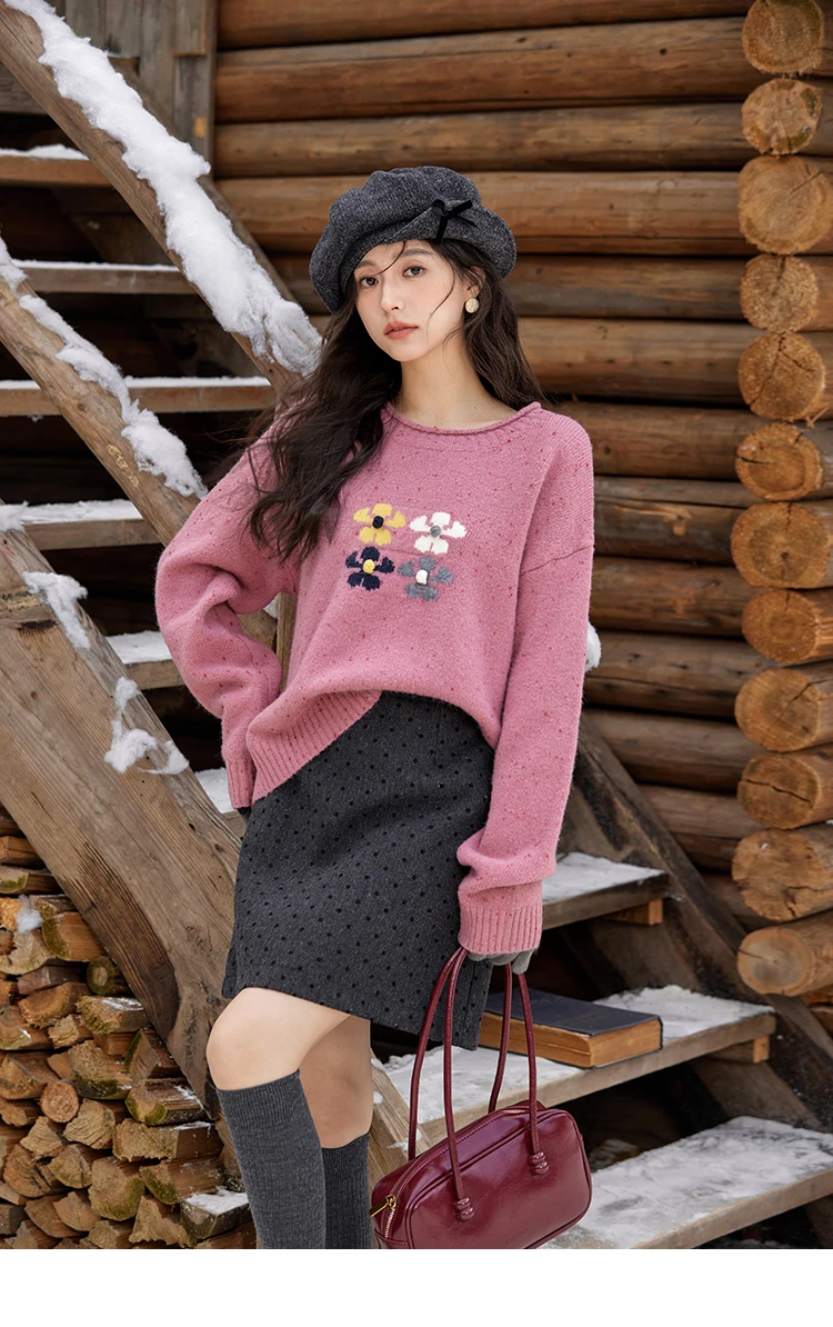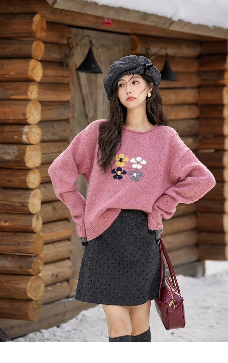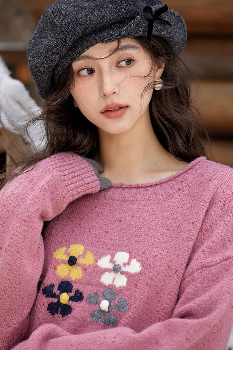 MISHOW Wool Blend Yarn Knitted Sweater Flower Color Dots Design 2024 Winter Women O-Neck Pullovers Lazy Sweaters MXD56Z1066