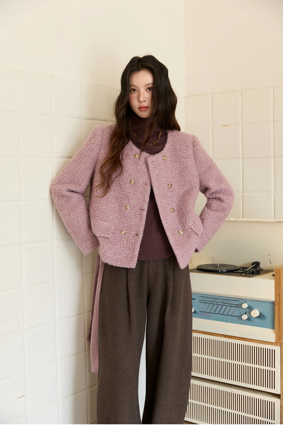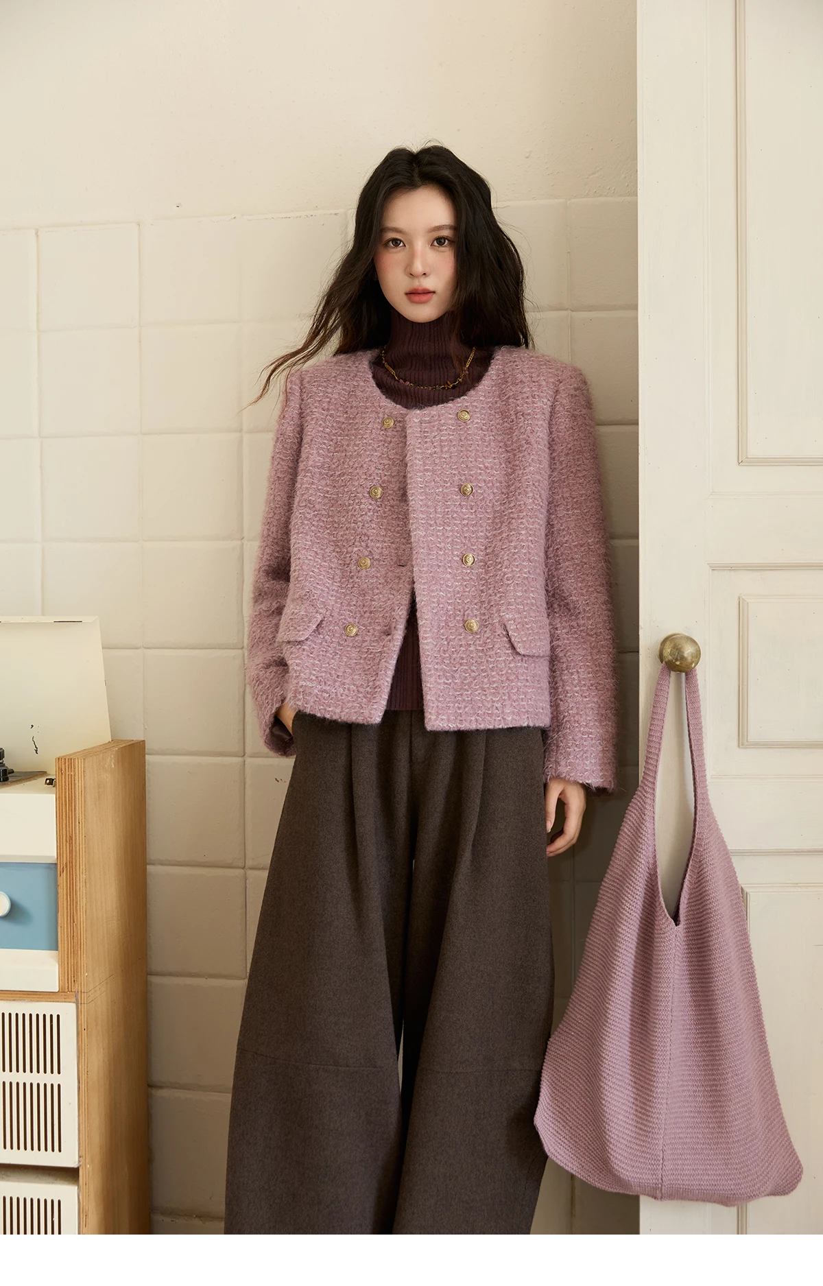 MISHOW Wool Coat Woman 2025 Purple Luxury O-neck Double-breasted Tweed Coat Commute Short Jacket Winter Clothes MXE88W0881