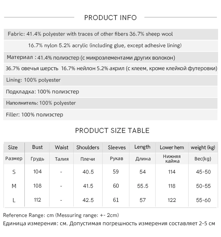 Material Composition: 41.4% polyester, 36.7% wool, 16.7% nylon, 5.2% acrylic