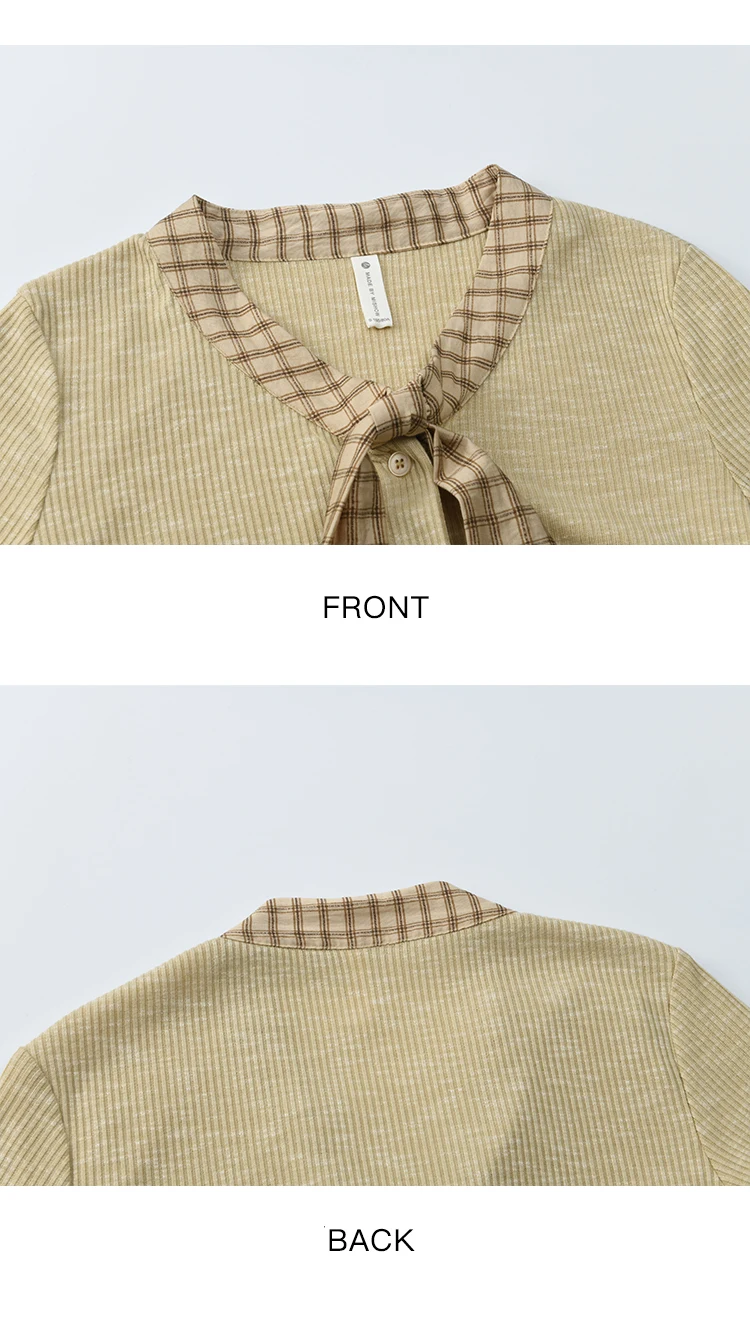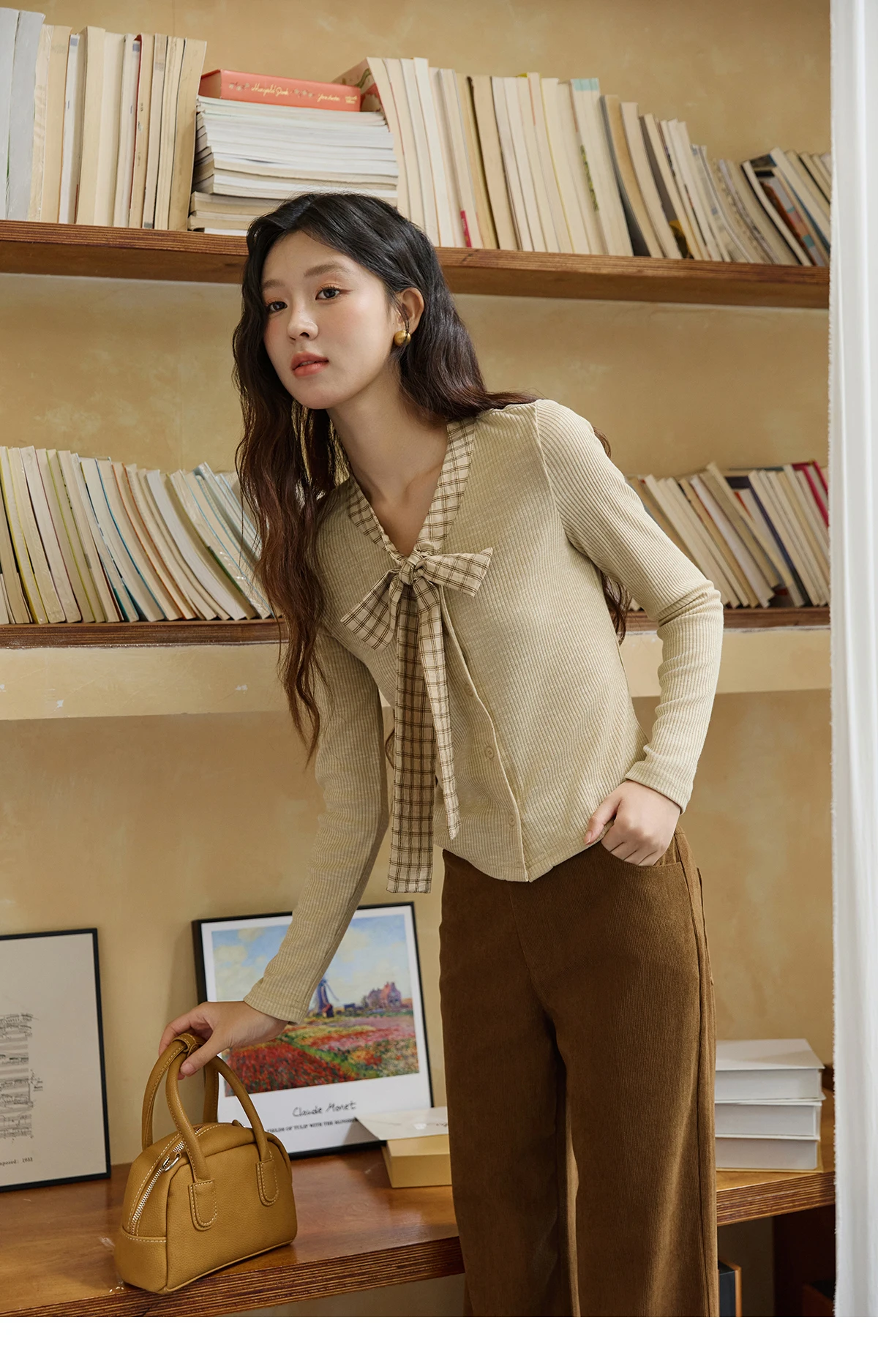 MISHOW Yellow Cardigan Women 2025 Autumn Vintage Plaid Bowknot V-neck Long-sleeve Knitted Top Commute Slim Sweater MXE16Z1168