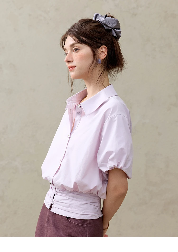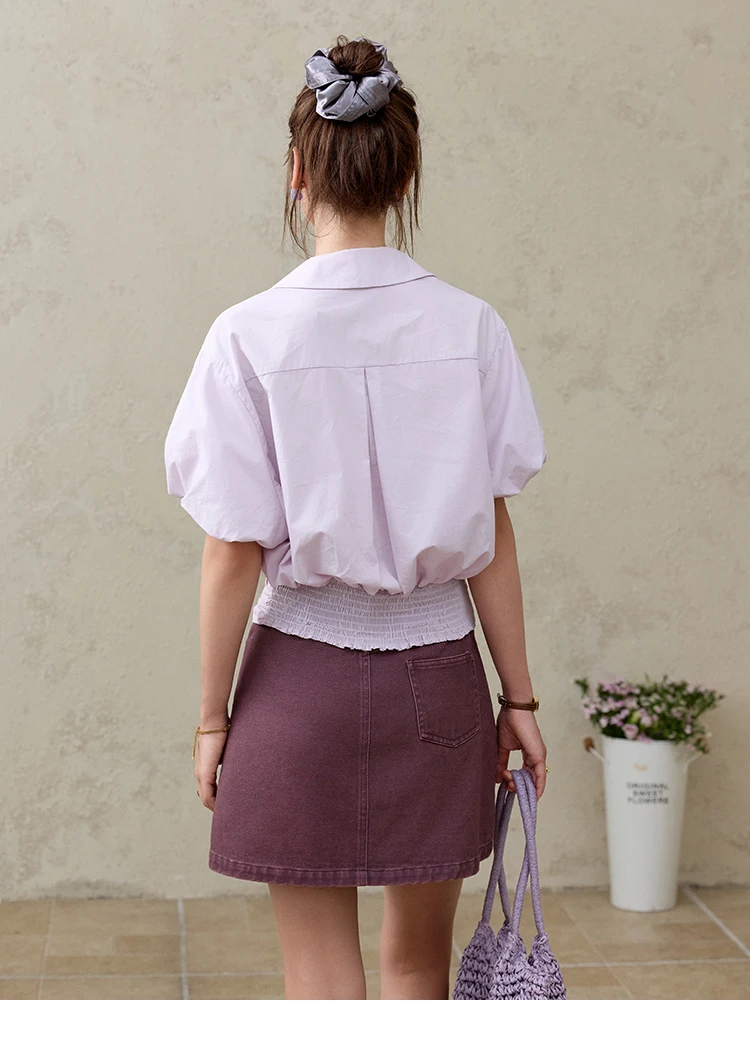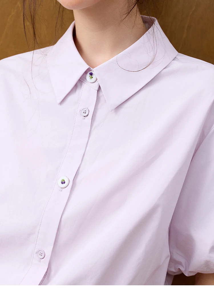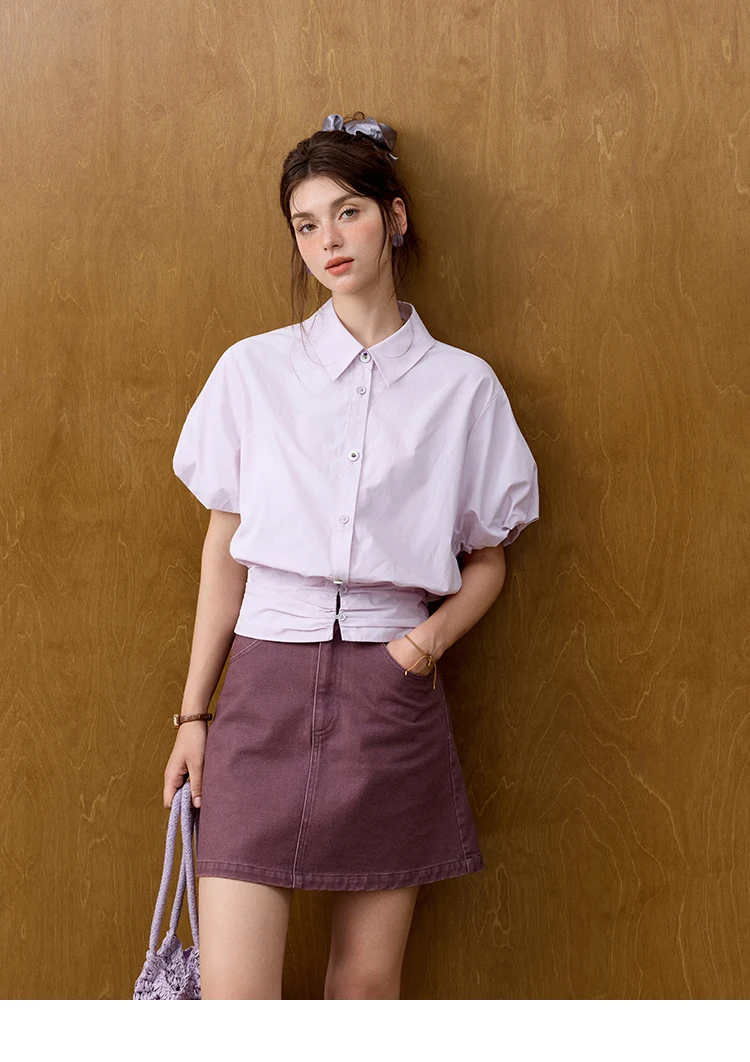MISHWO Office Lady Solid Blouses Women Summer New 2025 Short Sleeve Turn-down Collar Purple Cotton Shirts Female Thin MXE32X1794