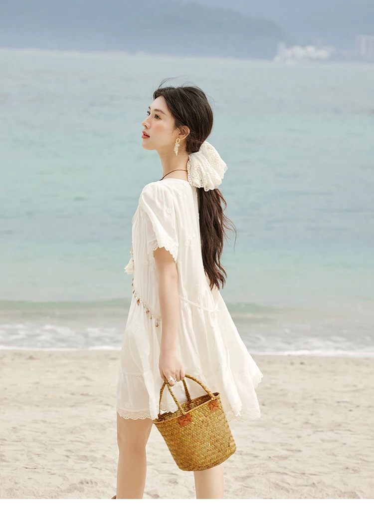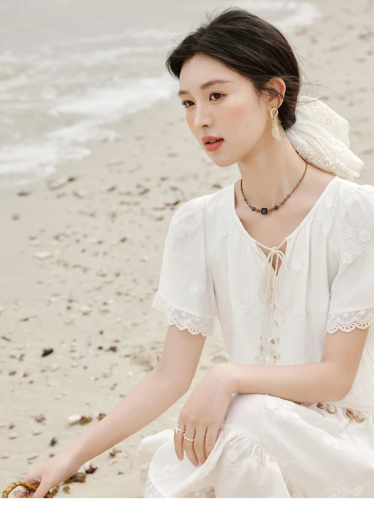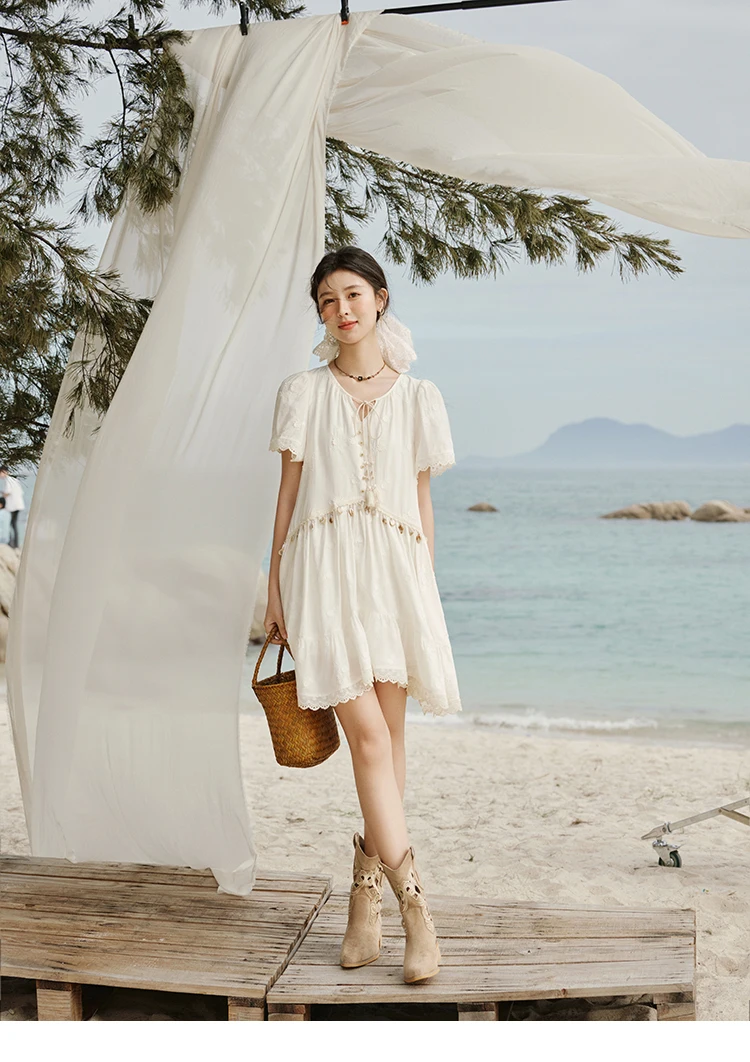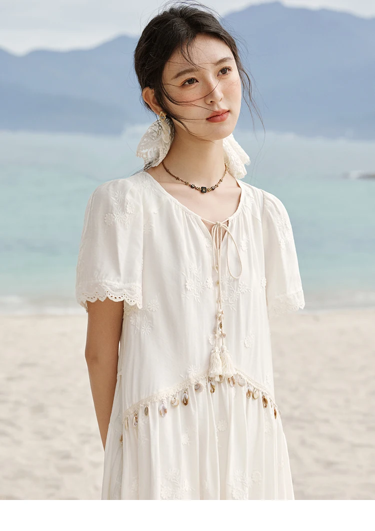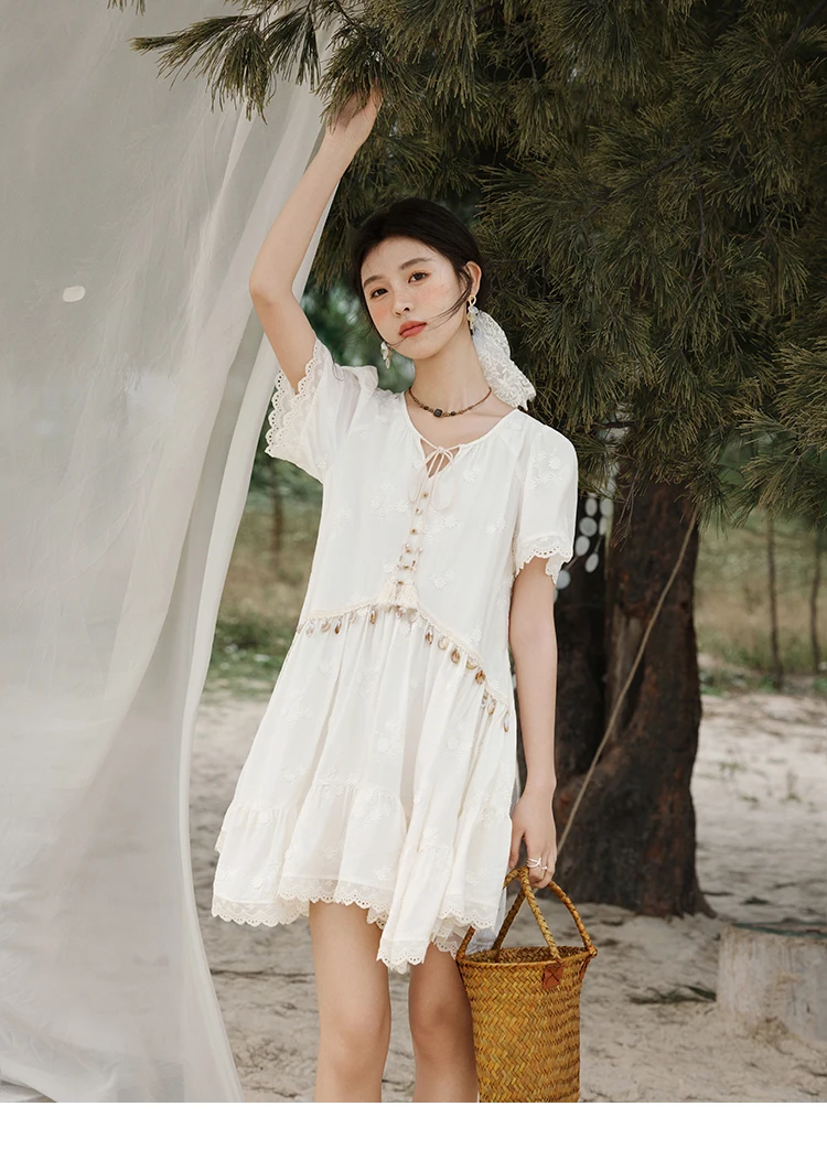MISOHW Bohemian Solid Women's Summer Dress New 2025 Short Sleeve V-neck Shell Lace Midi Dresses for Woman Fashion MXE33L2195